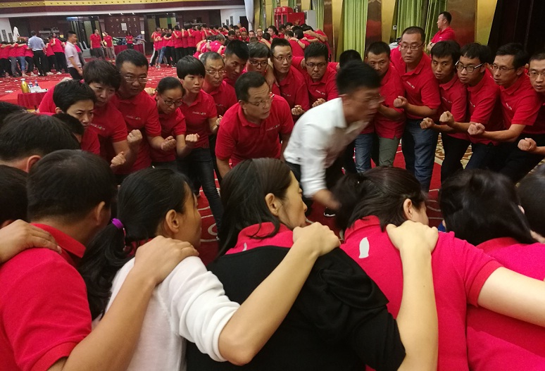 培訓(xùn)第二天用實(shí)戰(zhàn)PK的方式去對(duì)第一天所學(xué)的知識(shí)點(diǎn)加以印證實(shí)踐,課程中在推舉小組領(lǐng)袖的激戰(zhàn)環(huán)節(jié),經(jīng)過(guò)數(shù)輪比拼才最終成功推選出各小組領(lǐng)袖,他們將擔(dān)負(fù)著帶領(lǐng)團(tuán)隊(duì)達(dá)成目標(biāo),挑戰(zhàn)記錄的使命。簡(jiǎn)簡(jiǎn)單單的88個(gè)數(shù)字,一遍遍,一輪輪,整整一天各個(gè)小組在沖擊吉尼斯記錄的路上不斷尋求最佳方法。而在每一輪PK中,失敗團(tuán)隊(duì)的領(lǐng)袖要接受倍數(shù)遞增的懲罰,在看到小組領(lǐng)袖連續(xù)做300個(gè)俯臥撐最終幾乎癱倒在地的時(shí)候,偌大的會(huì)場(chǎng)鴉雀無(wú)聲,每一個(gè)人都深深的意識(shí)到,由于自己的過(guò)錯(cuò)和失誤導(dǎo)致領(lǐng)袖背負(fù)著嚴(yán)重的懲罰,此時(shí),每個(gè)人都在心中暗下決心,一定要心無(wú)雜念,全力以赴,沖擊記錄,不達(dá)目標(biāo)誓不罷休!
