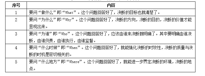 表2 決斷前應(yīng)做好的五個(gè)問(wèn)答